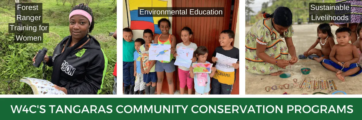 Women for Conservation (W4C) has supported ProAves through our community outreach conservation programs. W4C has directly trained and employed forest guard Fanny Mosqueras to work at the reserve, and has also supported youth environmental education. We have partnered with woman artisans from local Embera Kativa indigenous communities and support women’s business endeavors by selling their artisanal jewelry in our 10 Nature Reserve gift shops. We have also built strong rapport in the community of Carmen de Atrato, by facilitating free access to reproductive healthcare and education, at the request of community leaders. All of these community initiatives mutually benefit local communities while supporting wildlife conservation, and have been key to our success at Las Tangaras ProAves Reserve.