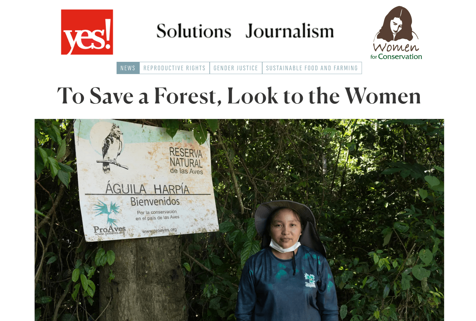 Women for Conservation is thrilled to be featured in Yes! magazine by environmental journalist Veronika Perková. “To Save a Forest, Look to the Women”, follows the story of Women for Conservation founder and President Sara Inés Lara through her journey of becoming a leading voice for conservation in Colombia, and how she landed on women’s empowerment initiatives as a leading conservation solution.